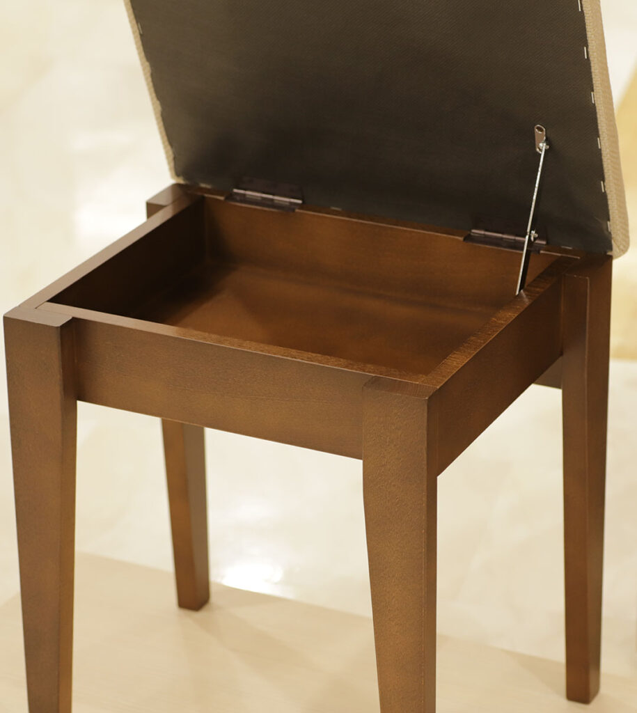 椅子は座面が開く収納式で、小物の整理にも便利です。